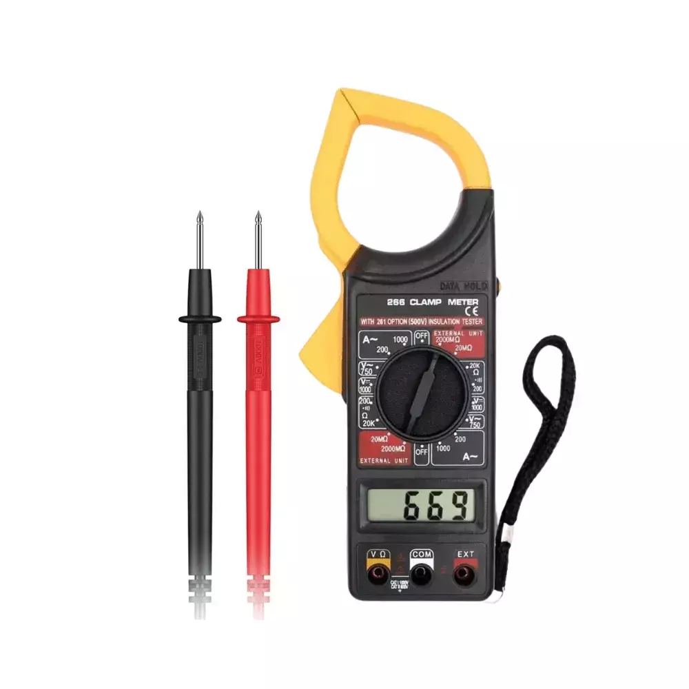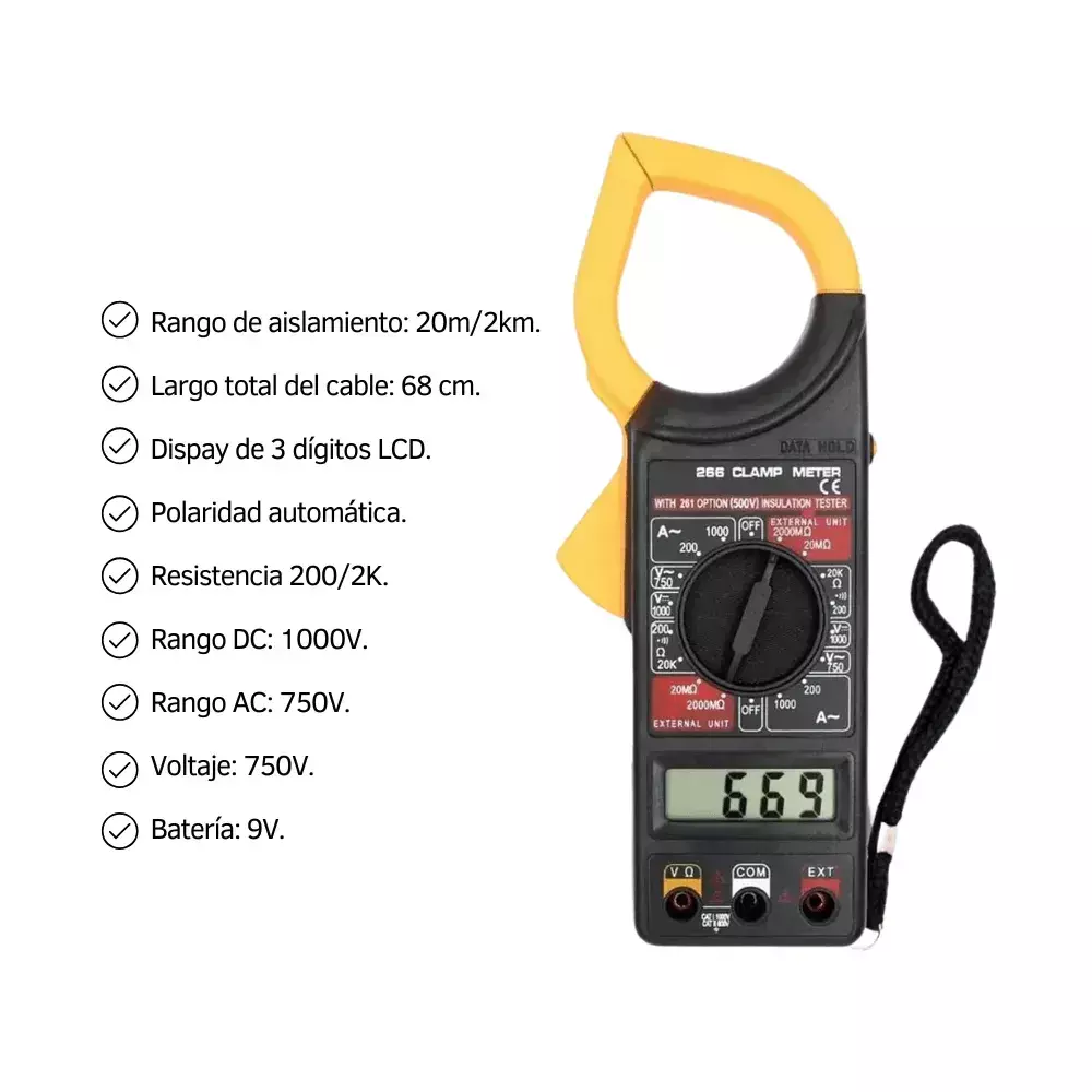 Un multímetro digital (DMM) es una herramienta de prueba utilizada para medir dos o más valores eléctricos, principalmente continuidad dtensión (voltios), corriente (amperios) y resistencia (ohmios).Es una herramienta de diagnóstico estándar para técnicos en la industrias eléctricas y electrónicas. Funciona con una bateria de 9 V. No incluida.